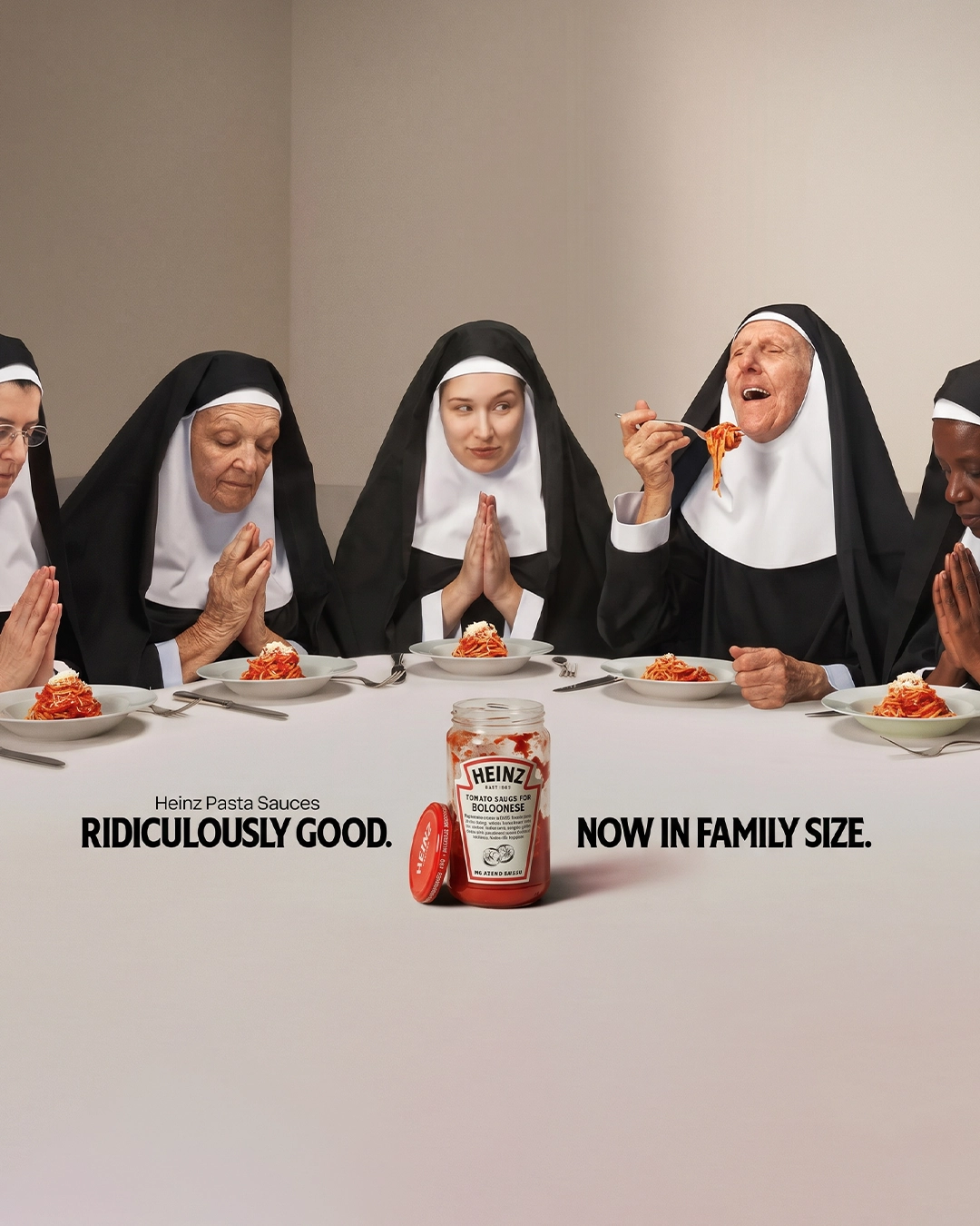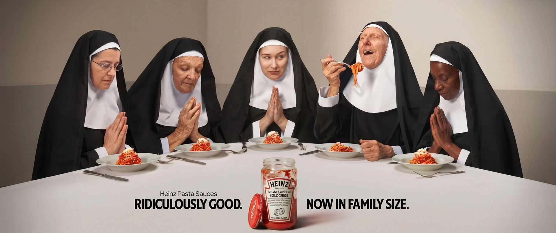 A agência aceitou o desafio e inspirou-se numa série de confissões culinárias baseadas em histórias reais. Estas histórias incluem uma freira disposta a pecar por um prato de massa, uma avó traquina que quebra as regras ao servir-se a si própria primeiro e uma noiva com molho Heinz no vestido: